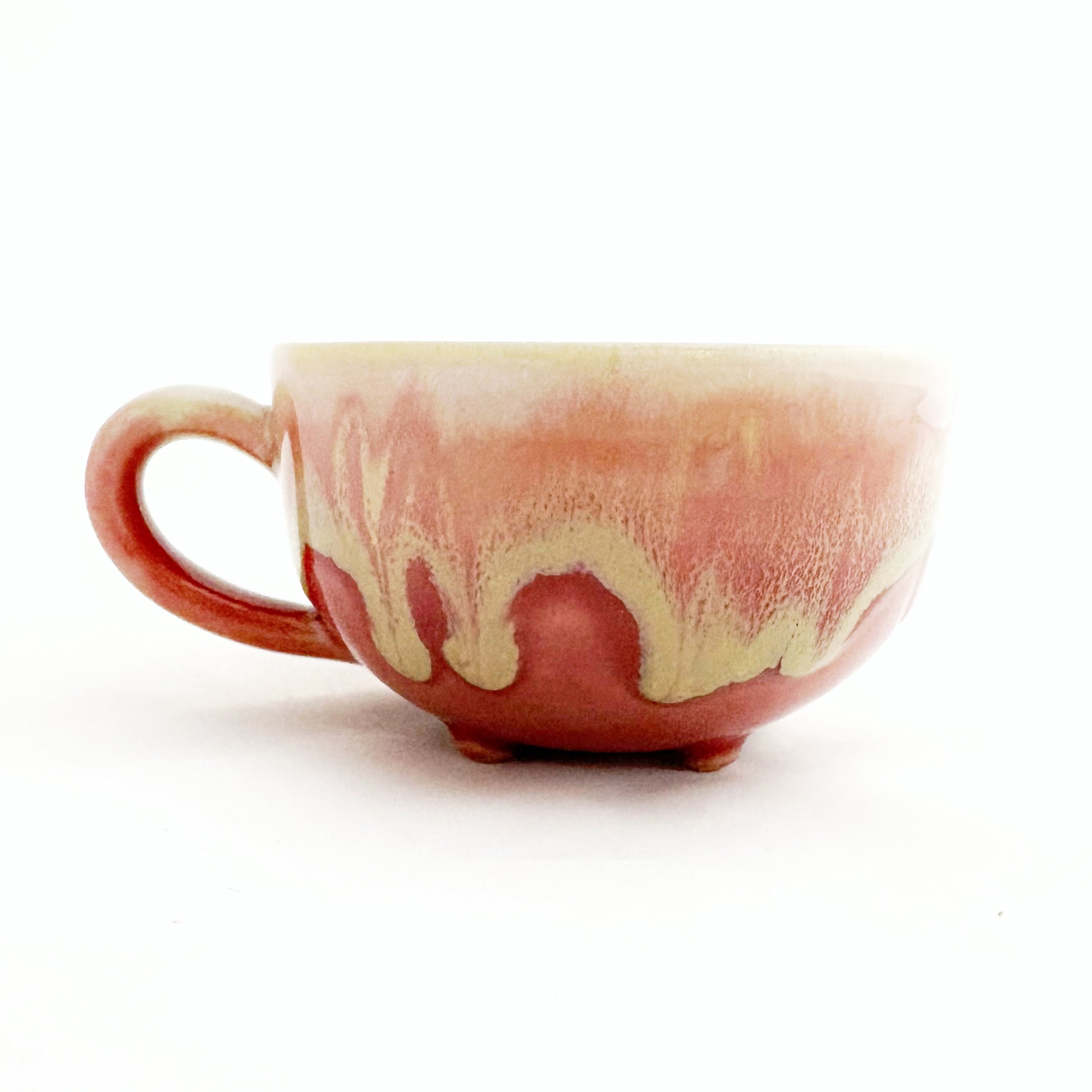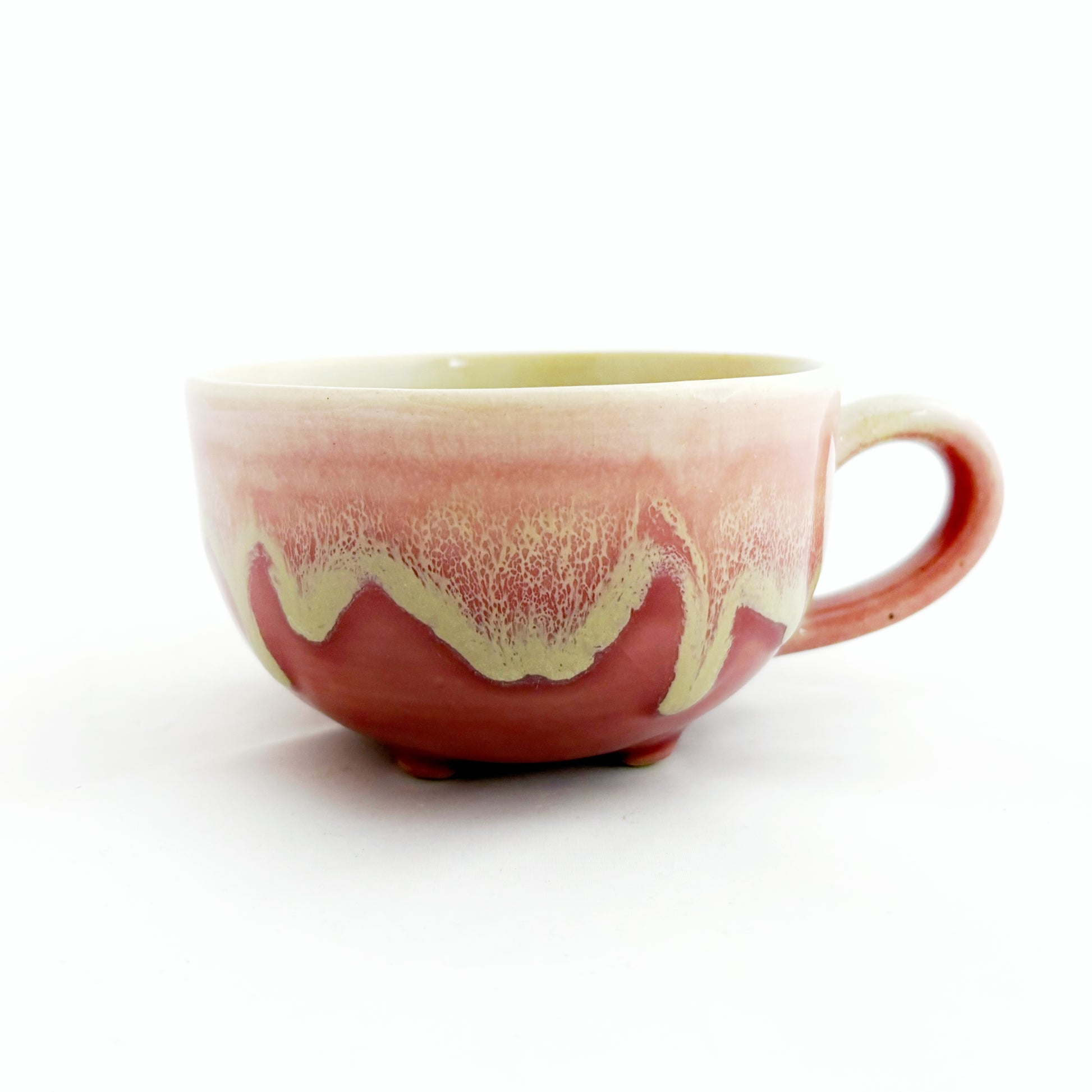 This whimsical cauldron mug will bring a little charm and magic to your daily routine. It was wheel-thrown and features four little feet attached to its base, while the handle was designed to satisfy both grip-the-handle and grip-the-mug drinkers. The beautiful solid-color exterior glaze provides the perfect backdrop to the dripping effect, and the interior glaze matches the color of the drips.