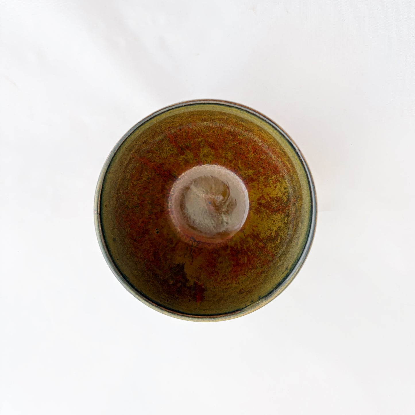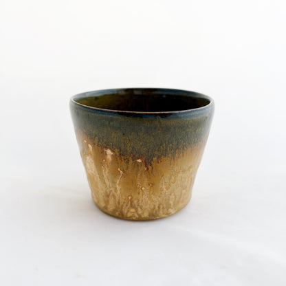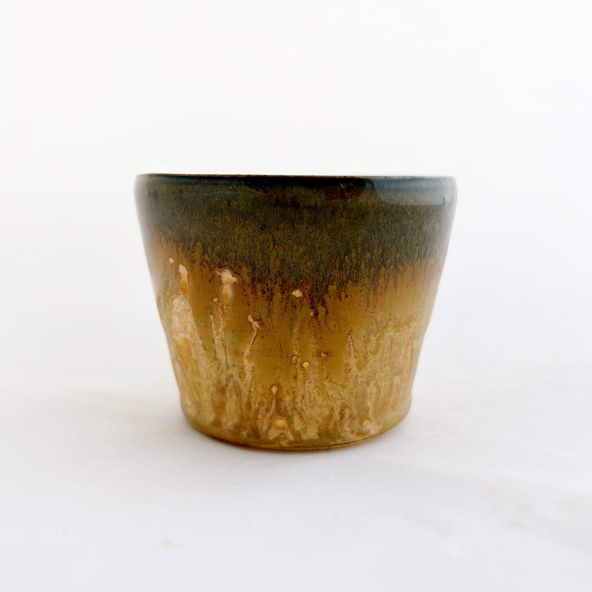 Small tumbler or cocktail glass glazed in a warm desert palette.