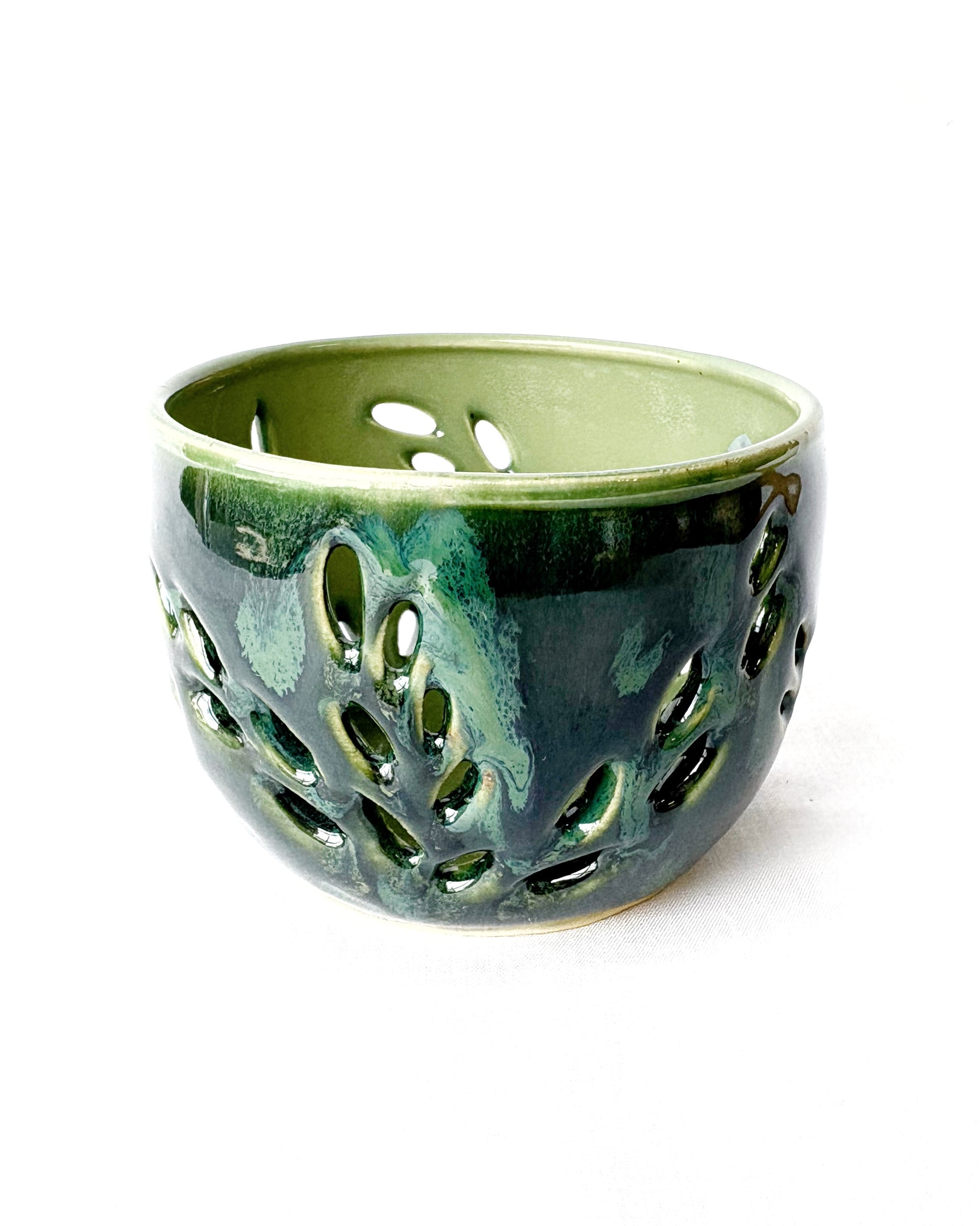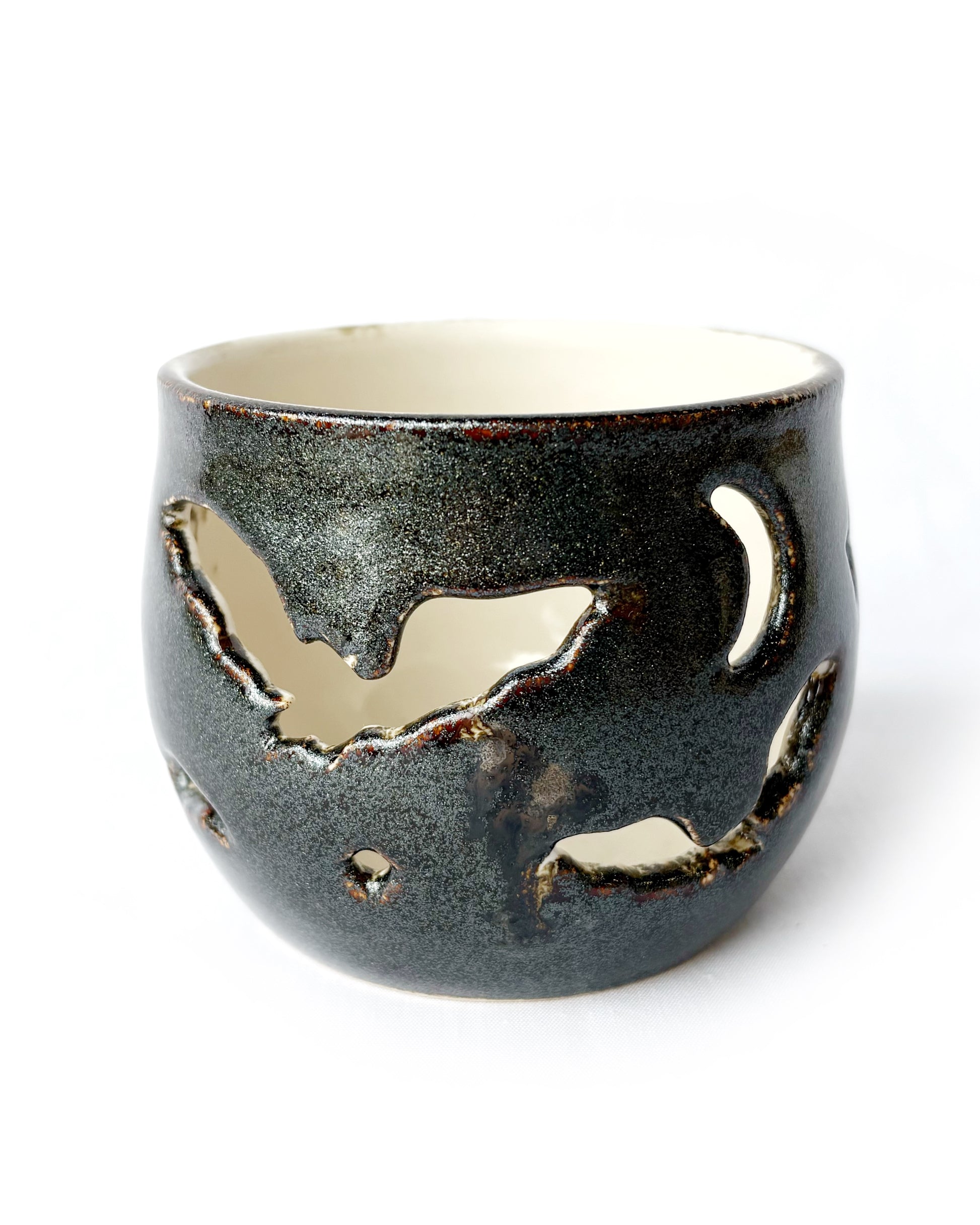 Light up your night with a wheel-thrown, hand-carved, one-of-a-kind ceramic luminary. These are the perfect size for a tea-light and we have options for everyone - from the silly to the serious.
