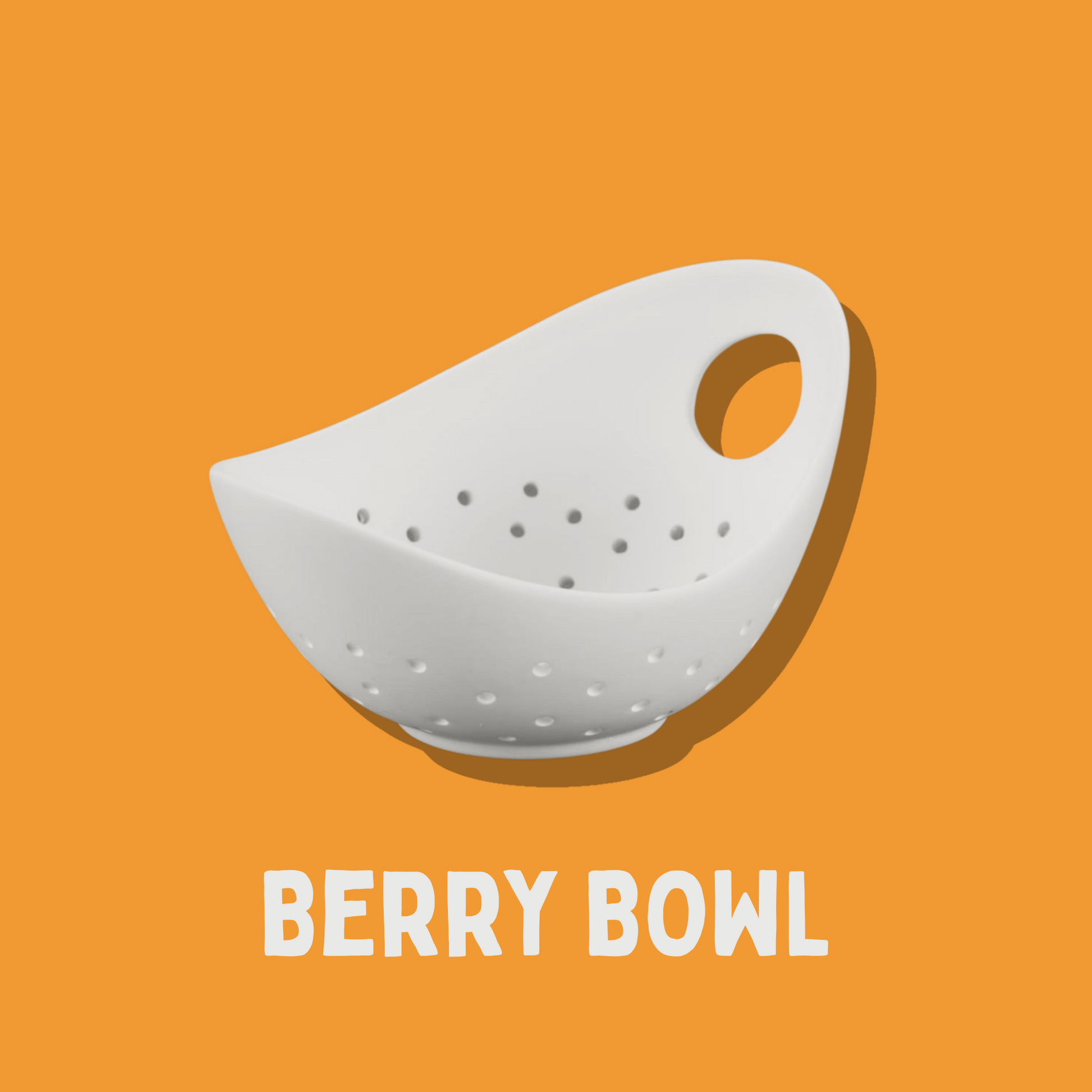 Berry Bowl: 7.5" long x 6.25" wide x 4.75" tall