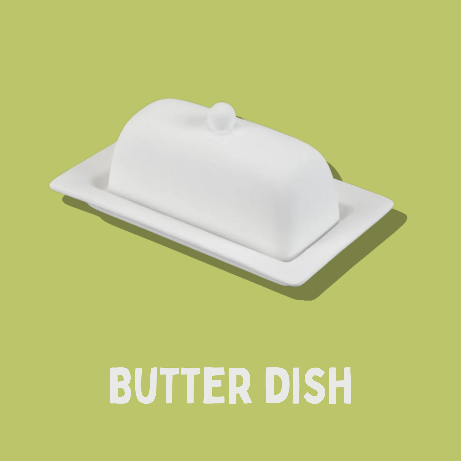 Butter Dish: 7.25” long x 4.25” wide x 4” tall
