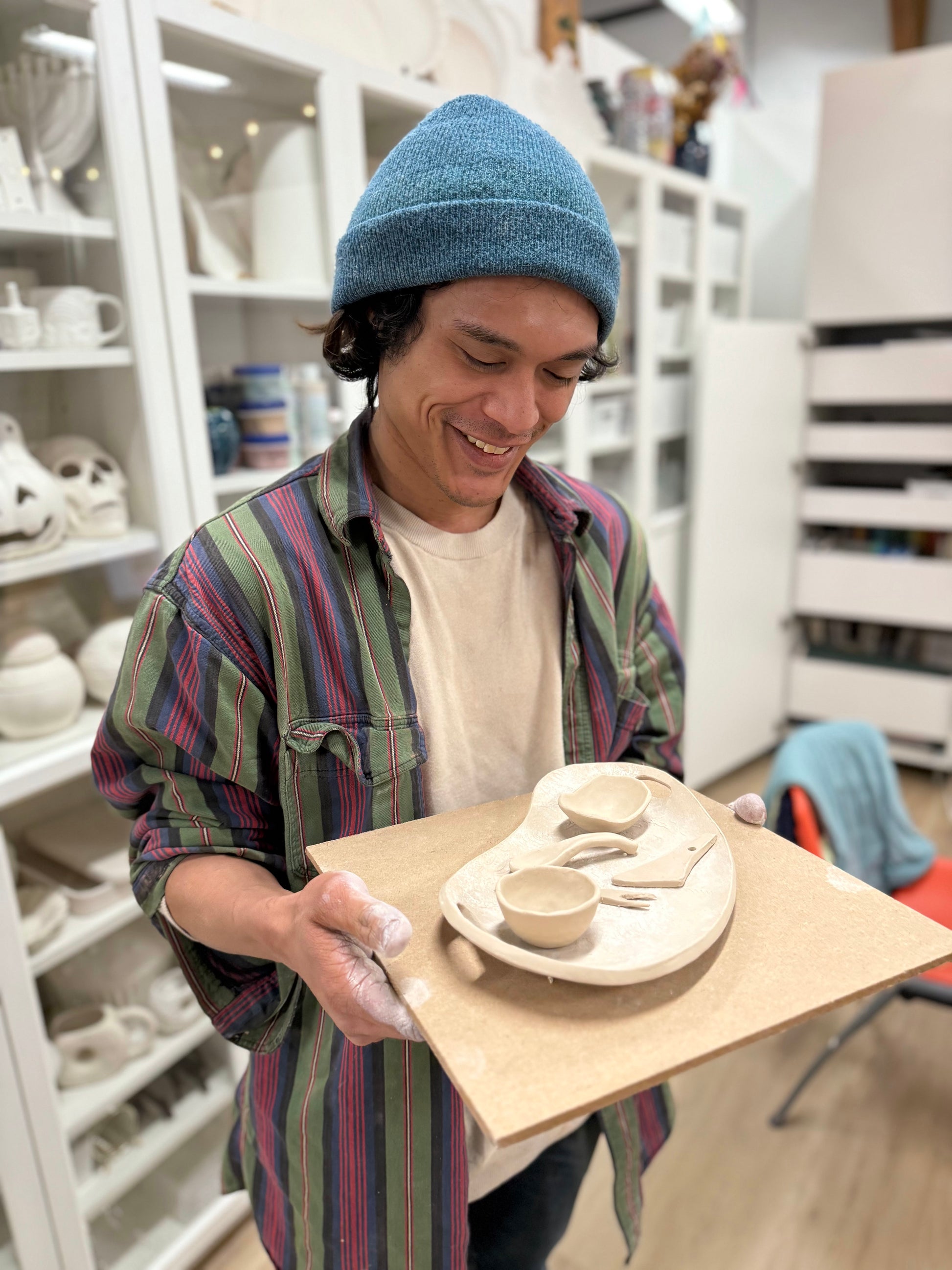 If you’d like to come back and glaze and decorate your own pieces after the workshop, you can add on a glazing session for $20 by selecting the “Charcuterie Set + Glazing Session” ticket. Glazing sessions will be held two weeks later on Saturday, February 28 at the same time as your workshop (11am - 1pm or 3 - 5pm). No worries if you can’t come back yourself - the basic “Charcuterie Set” ticket includes an instructor glazing the pieces a solid color for you!